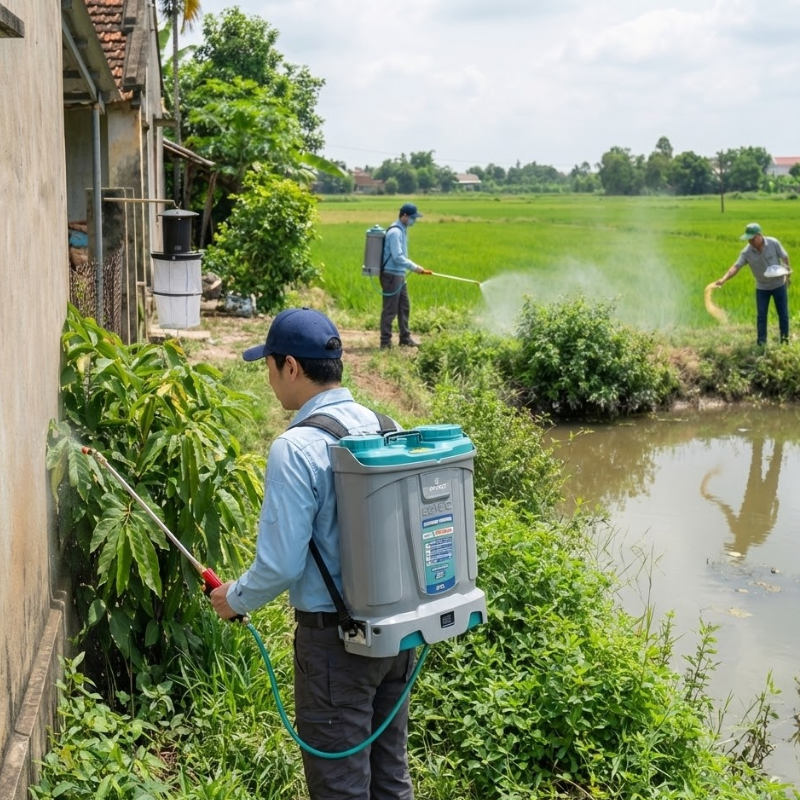 - Kiểm soát sinh học: Xử lý bọ gậy tại cống rãnh, hố ga, khu vực đọng nước.