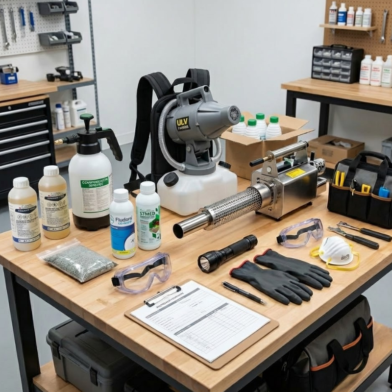 Hệ thống thiết bị hiện đại (máy phun ULV, mù nóng DOF) giúp thuốc phân tán đều và đi sâu vào các ngóc ngách, bụi rậm.