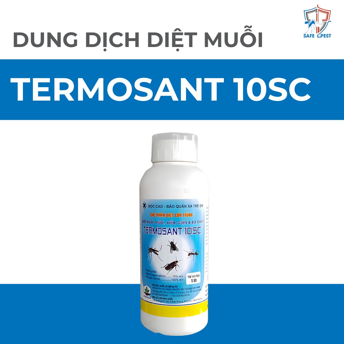 Termosant 10SC là chế phẩm diệt muỗi trong gia đình và y tế, hiệu quả cao khi áp dụng trong không gian kín. Không mùi – giá tốt – hiệu quả ổn định, là lựa chọn thay thế kinh tế hơn cho các dòng SC cao cấp khác (Ale, Fendona…). Bên cạnh phun diệt muỗi, Termosant 10SC còn được sử dụng để ngâm tẩm mùng màn, giúp phòng bệnh truyền nhiễm do muỗi gây ra.